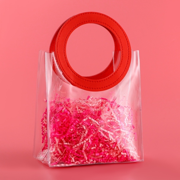 - Прозрачная сумочка с фигурной ручкой идеально подходит для различных видов подарков, начиная от косметики и заканчивая небольшими предметами интерьера.