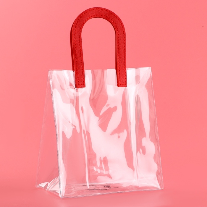 - Прозрачная сумочка с фигурной ручкой идеально подходит для различных видов подарков, начиная от косметики и заканчивая небольшими предметами интерьера.