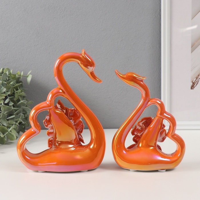 Сувенир керамика "Лебеди с розами" перламутр набор 2 шт h=16,5 см 6х15,5х19,5 см