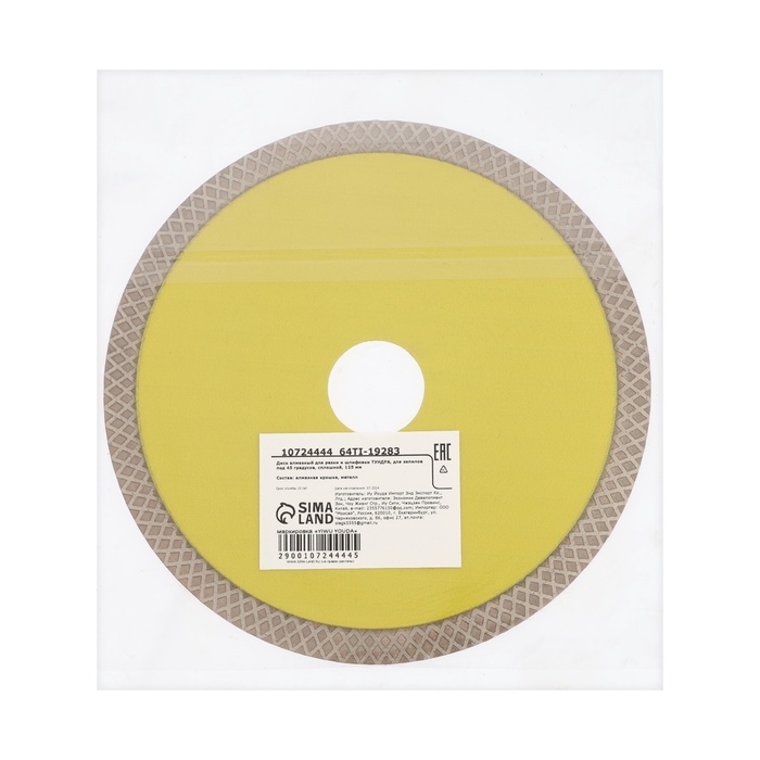 Диск алмазный для резки и шлифовки ТУНДРА, для запилов под 45 градусов, сплошной, 125 мм