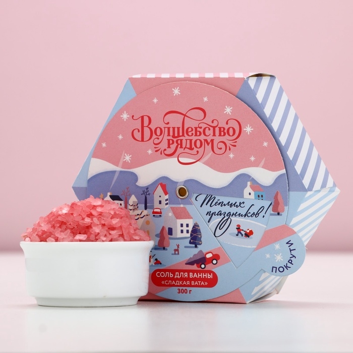 Соль для ванны ЧИСТОЕ СЧАСТЬЕ «Волшебство рядом», 300 г, аромат сладкой ваты, Новый Год