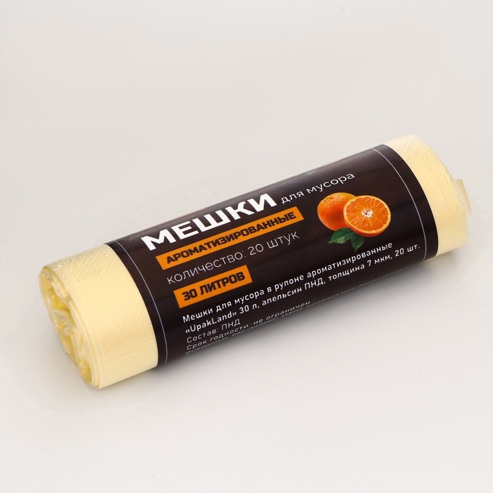 Мешки для мусора в рулоне ароматизированные "UpakLand" 30 л, АПЕЛЬСИН ПНД, толщ 7 мкм, 20шт