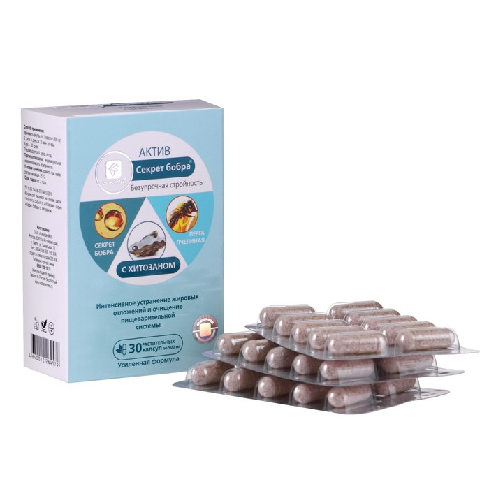 БАД «Секрет бобра актив» с хитозаном, снижение веса, 30 капсул по 500 мг