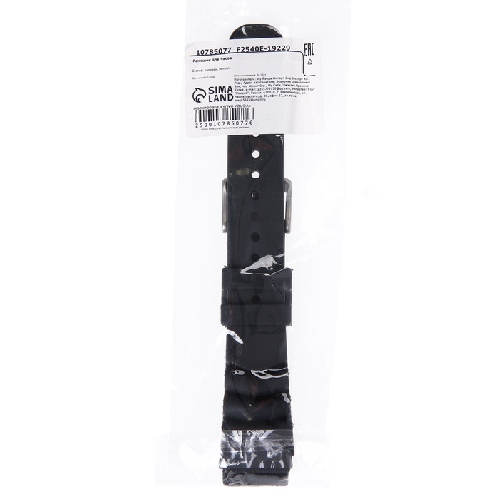 Ремешок для часов 20 мм, силикон, l-23.5 см, черный