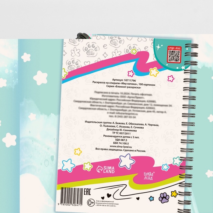 Раскраска детская на спирали «Мяу котики», 100 картинок