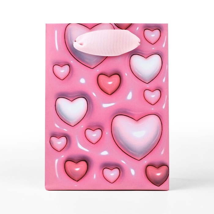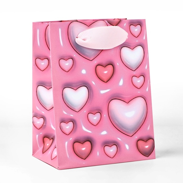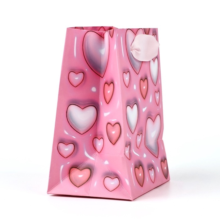 Пакет ламинированный «Сердца», 9 × 12 × 6,5 см