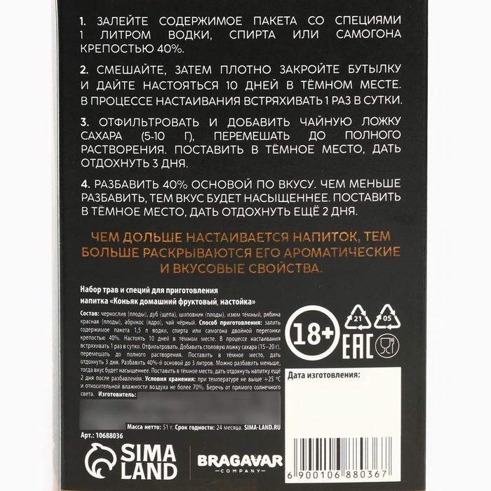 Специи для приготовления настойки «Коньяк фруктовый»