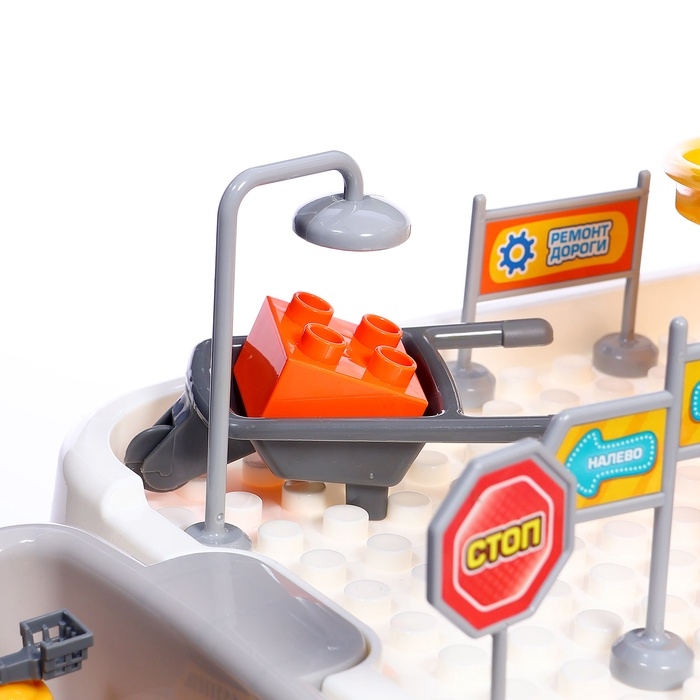 - Развивает моторику и координацию: управление краном и машинками тренирует мелкую моторику.