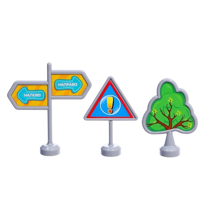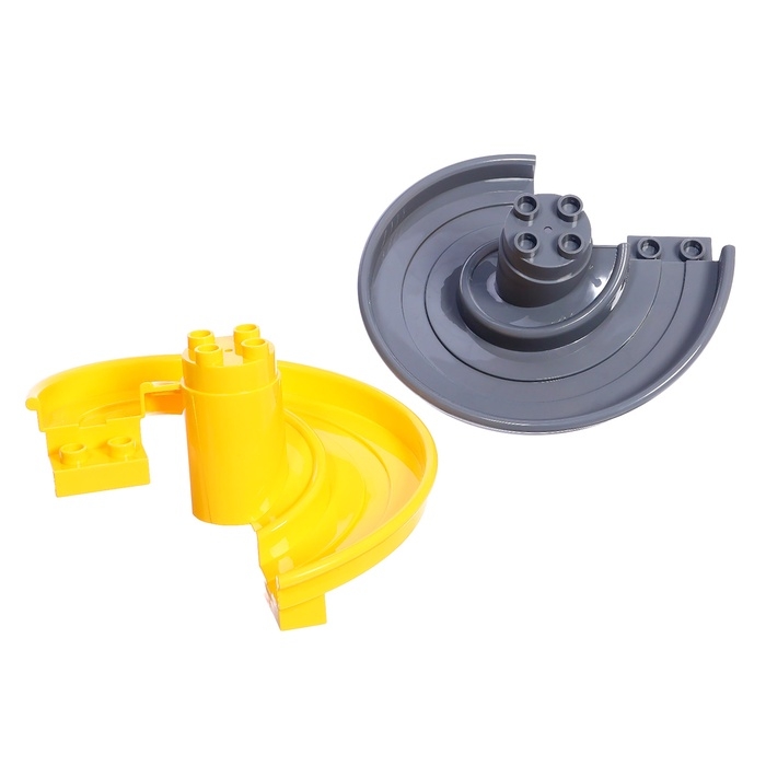 - Подвижные элементы: кран поднимается, флажки вращаются, машинки скатываются с горки.