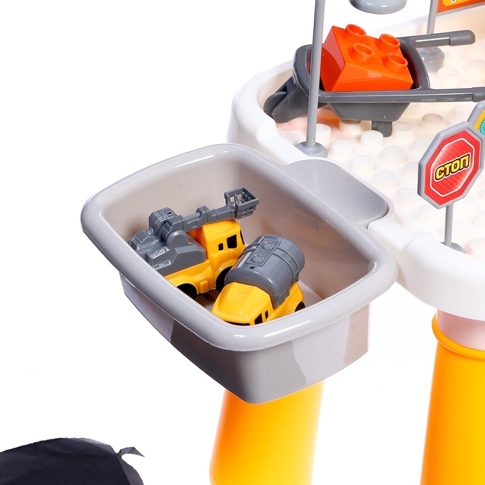 - Стимулирует творческое мышление: ребёнок придумывает сценарии и строит собственную стройплощадку.