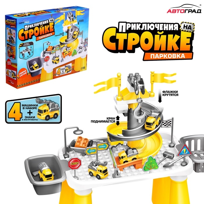 Интерактивный набор-парковка «Приключения на стройке», 4 машинки в наборе, подвижные элементы, аксессуары