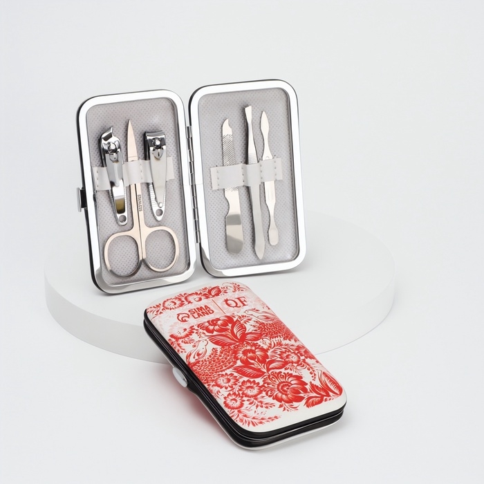 Набор маникюрный «Роспись», 6 предметов, в футляре, красный, белый