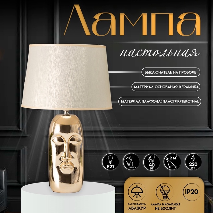 Настольная лампа с абажуром RISALUX «Рикардо», Е27, 40 Вт, фигурное основание, 30×30×48 см