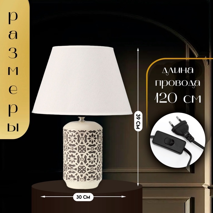 Настольная лампа с абажуром RISALUX «Ивела», Е27, 40 Вт, 30×30×39 см