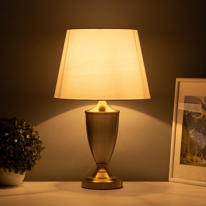 Настольная лампа с абажуром RISALUX «Лори», Е27, 40 Вт, латунь, 28×28×45.5 см