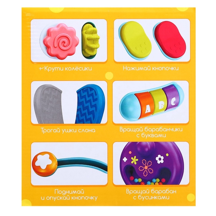 Игры с «Слонёнком» помогают малышу осваивать основные навыки: от мелкой моторики до понимания форм и цветов. Занимаясь с игрушкой, ребёнок учится концентрироваться и взаимодействовать с предметами. Крутящиеся элементы и тактильные детали увлекают малыша, а простота использования делает игру доступной для самостоятельного изучения.