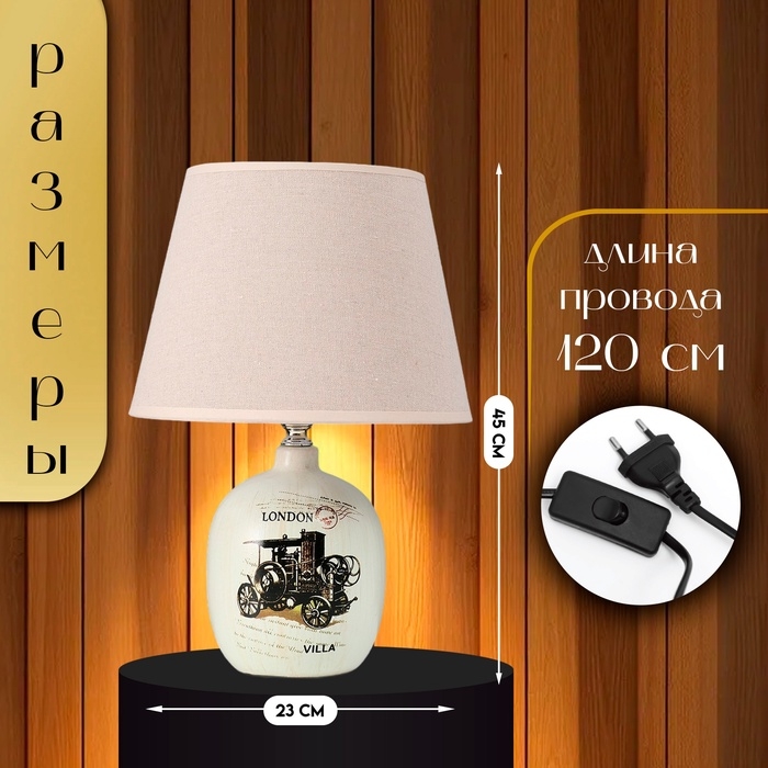 Настольная лампа с абажуром RISALUX «Аззуро», Е14, 40 Вт, коричневый, 23×23×45 см