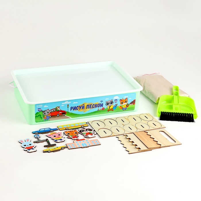 Планшет «Рисование песком», 27 х 39 см, песок 1 кг, 10 фигурок, набор для творчества