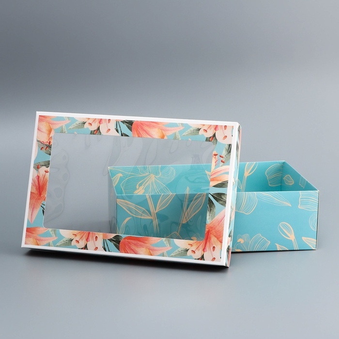 Коробка складная, крышка-дно, "Цветочки", 24 х 17 х 8 см с окном