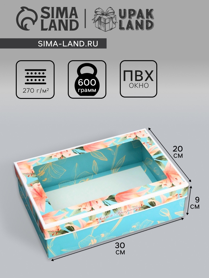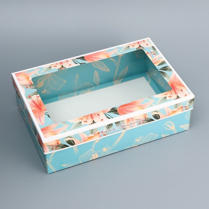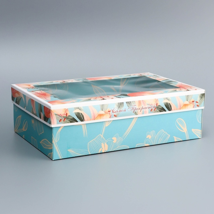 Коробка складная, крышка-дно, "Самой прекрасной", 30 х 20 х 9 см с окном
