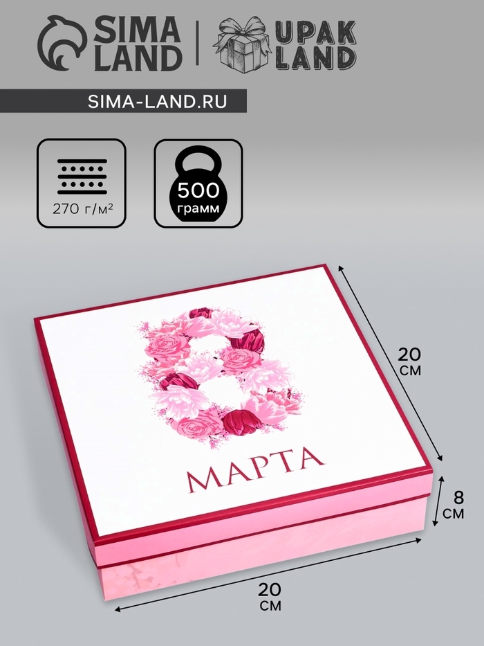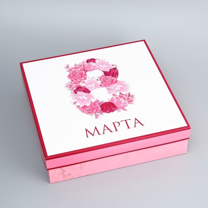 Коробка складная, крышка-дно, " 8 марта", 30 х 30 х 8 см без окна