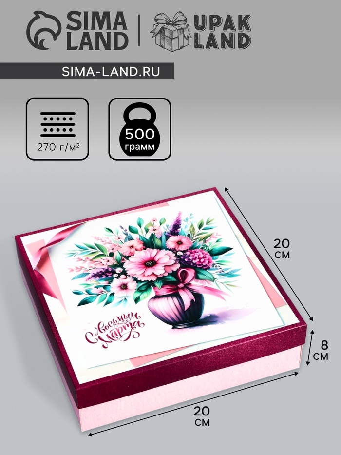 Коробка подарочная сборная, упаковка, «8 марта», 22 х 15 х 10 см