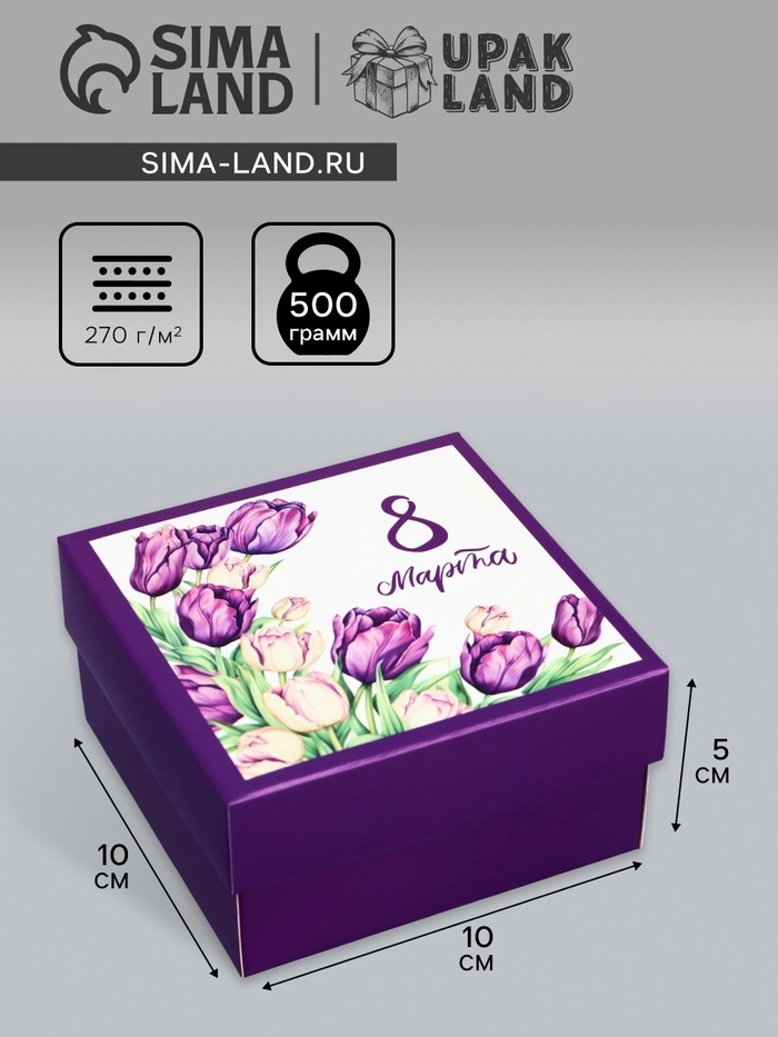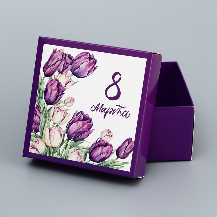 Коробка складная, крышка-дно, "8 марта", 10 х 10 х 5 см без окна