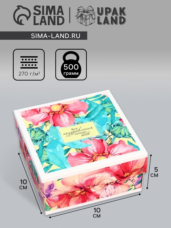 Коробка складная, крышка-дно, "Комплимент", 10 х 10 х 5 см без окна