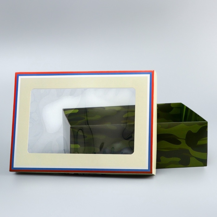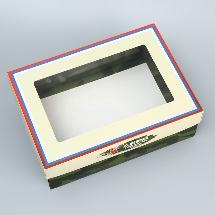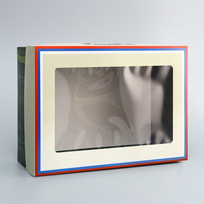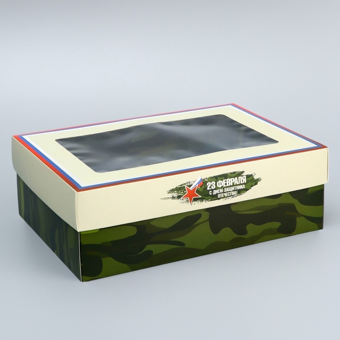 Коробка складная, крышка-дно, "23 Февраля", 24 х 17 х 8 см с окном
