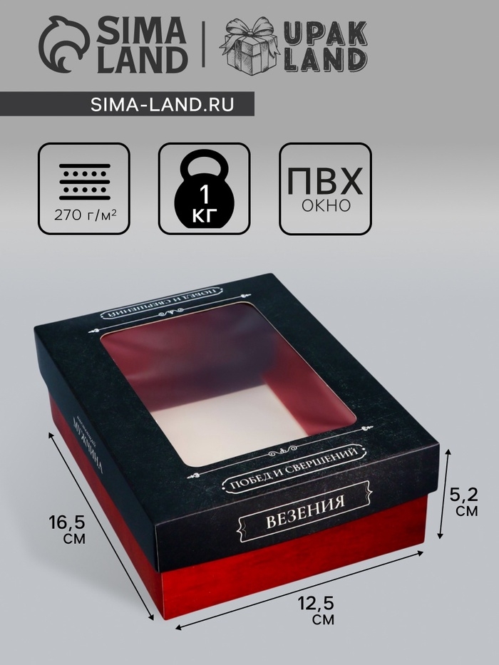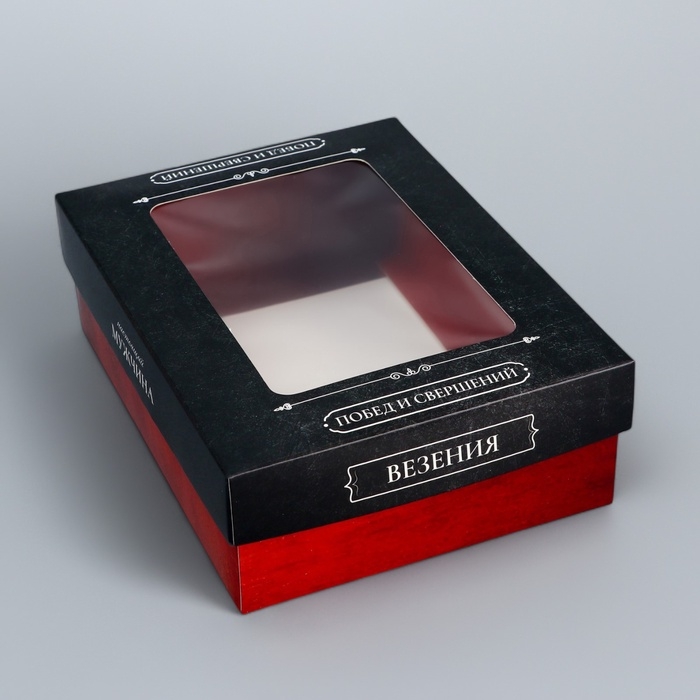 Коробка складная, крышка-дно, " Настоящему мужчине", 16,5 х 12,5 х 5,2 см с окном