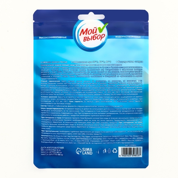 Капсулы для стирки Мой Выбор "Свежесть океана" 10 шт. по 8 гр дойпак