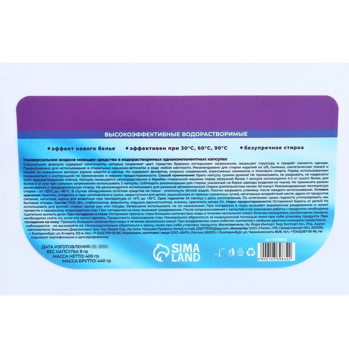 Упаковка на 50 капсул обеспечит вас необходимым запасом моющего средства на продолжительное время, позволяя наслаждаться качеством стирки и приятным ароматом каждый день. Удобная форма выпуска упрощает процесс использования, делая уход за одеждой ещё более комфортным.