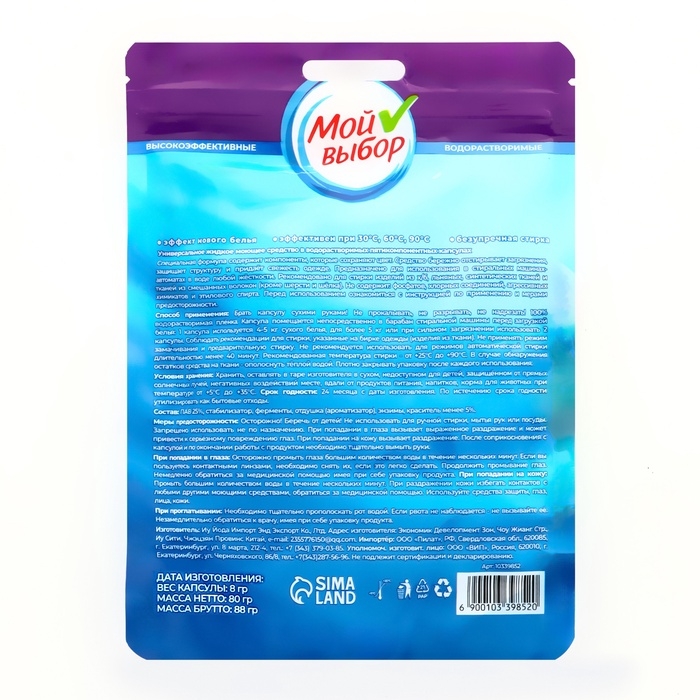 Капсулы для стирки Мой Выбор "Свежесть океана" 10 шт. по 8 гр дойпак