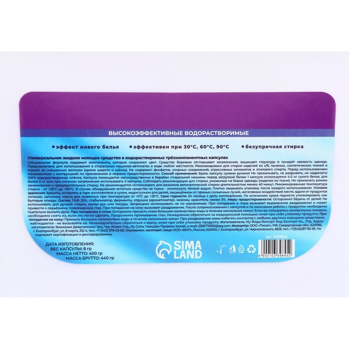 Упаковка на 50 капсул обеспечит вас достаточным запасом моющего средства на долгое время. Забудьте о сложностях выбора средств для стирки – достаточно одной капсулы, и она справится со всеми задачами.