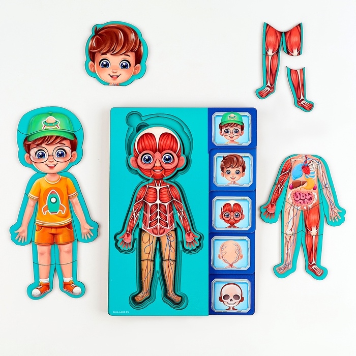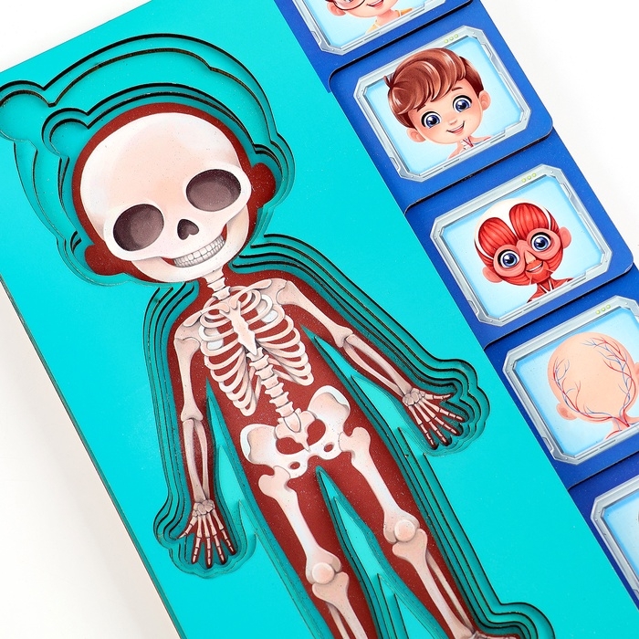 Обучающий набор поможет ребёнку узнать, какие органы есть в организме человека и какие функции они выполняют.