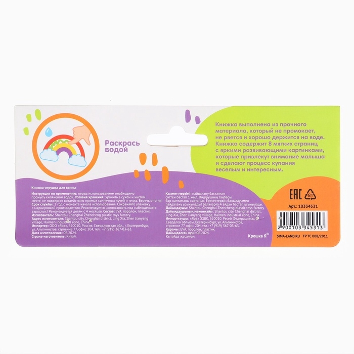 Книжка - игрушка для ванны «Кто как говорит?», водная раскраска, Крошка Я