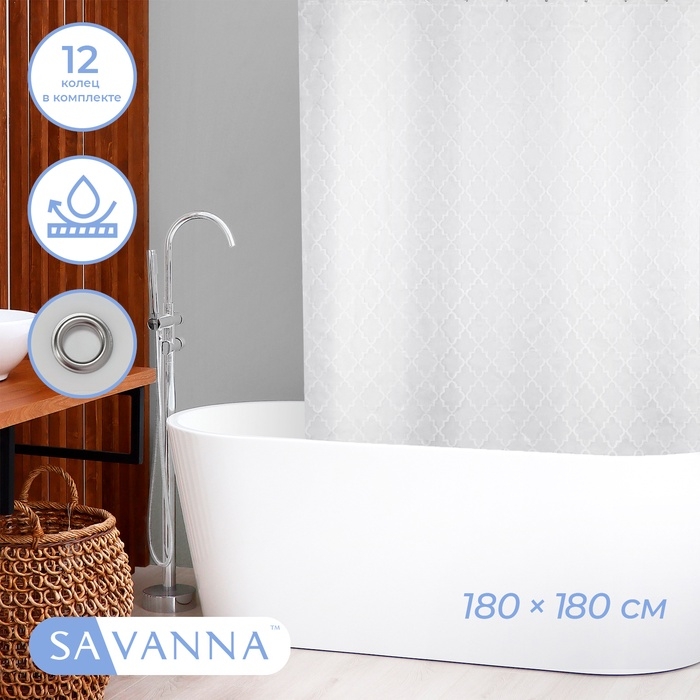 Добавьте изюминку в вашу ванную комнату с помощью шторы, которая сочетает в себе стиль и функциональность. Размер 180×180 см идеально подходит для создания уюта, а уникальный узор на белом фоне придаст вашему интерьеру свежесть и оригинальность.