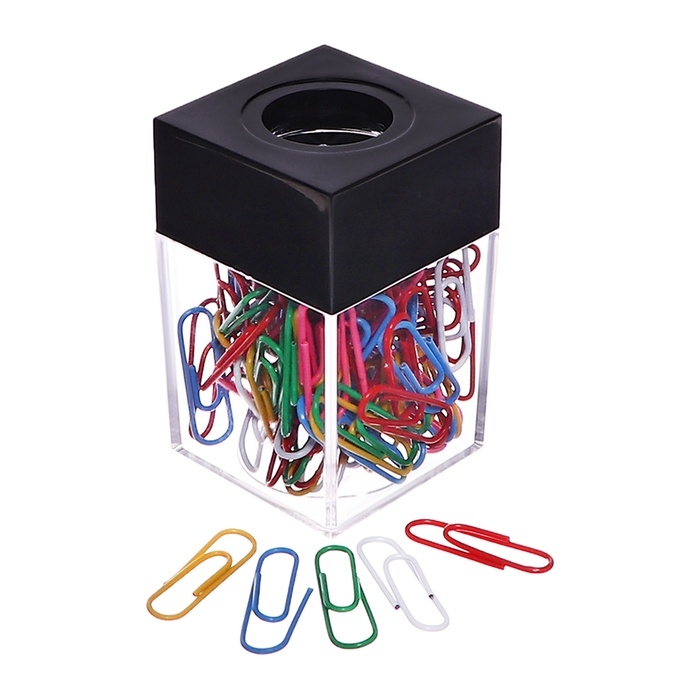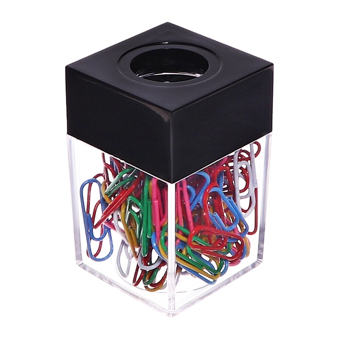 Скрепочница квадратная с магнитом прозрачная пластик, скрепки цветные 100 штук
