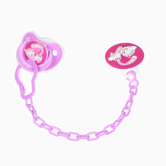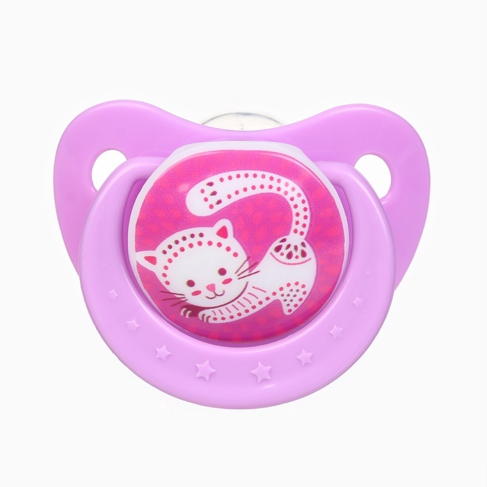 Пустышка ортодонт., с колпачком и держателем, от 0 мес., цвет Фиолет / Роз