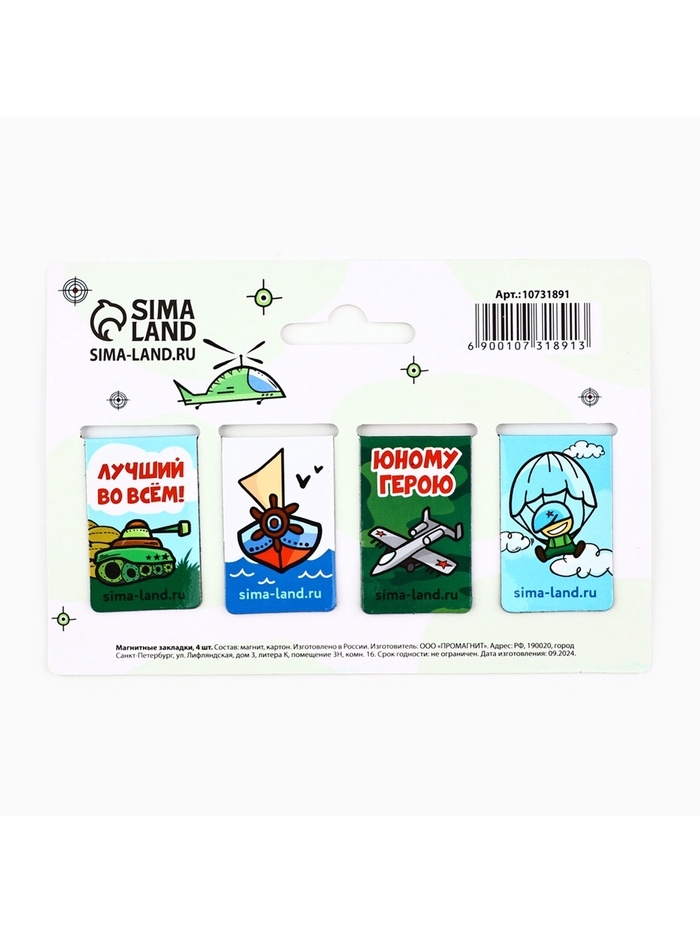 Магнитные закладки для книг, 4 шт. «Защитнику отечества»