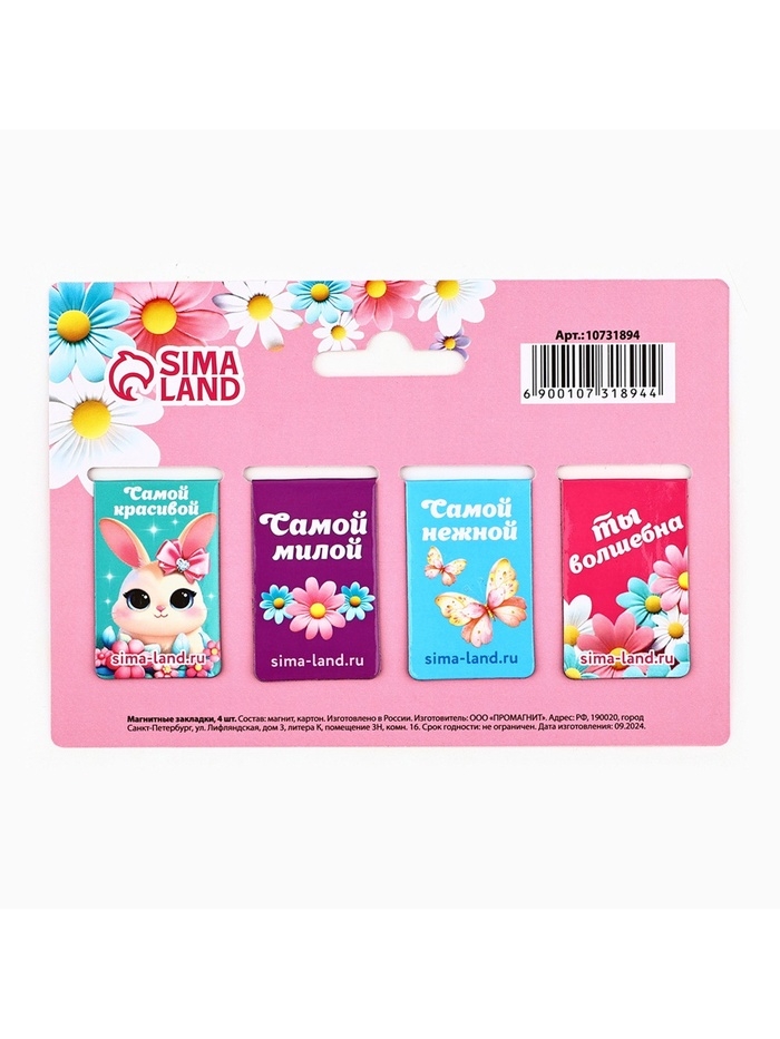 Магнитные закладки мини, 4 шт "Самой нежной"