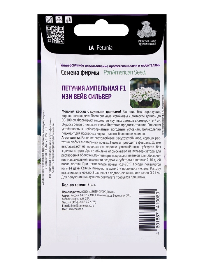 Семена цветов Петуния ампельная F1 Изи Вейв Сильвер, 5шт