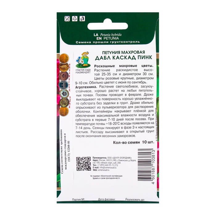 Семена цветов Петуния махровая Дабл каскад пинк, 10шт