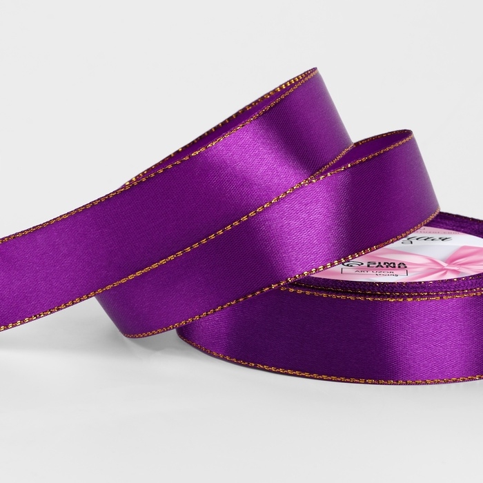 Лента атласная «Золотые нити», 25 мм × 23 ± 1 м, цвет фиолетовый №35
