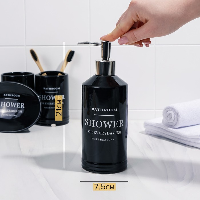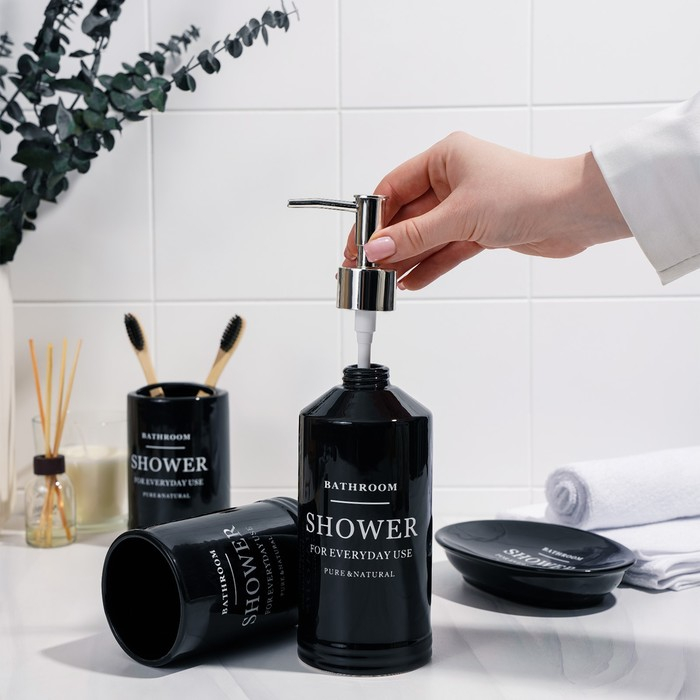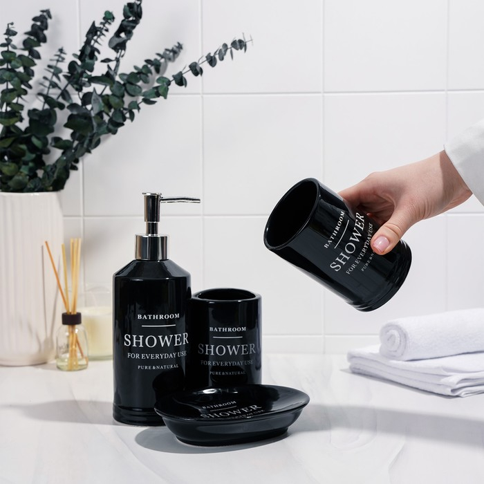 Набор аксессуаров для ванной комнаты «Лофт», 4 предмета (мыльница, дозатор для мыла 420 мл, 2 стакана), цвет чёрный