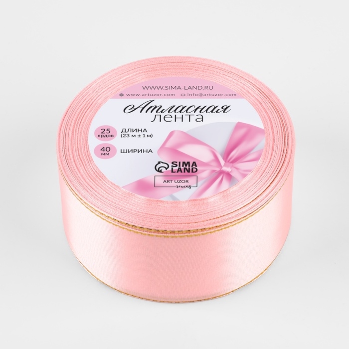 Лента атласная «Золотые нити», 40 мм × 23 ± 1 м, цвет розовый №04