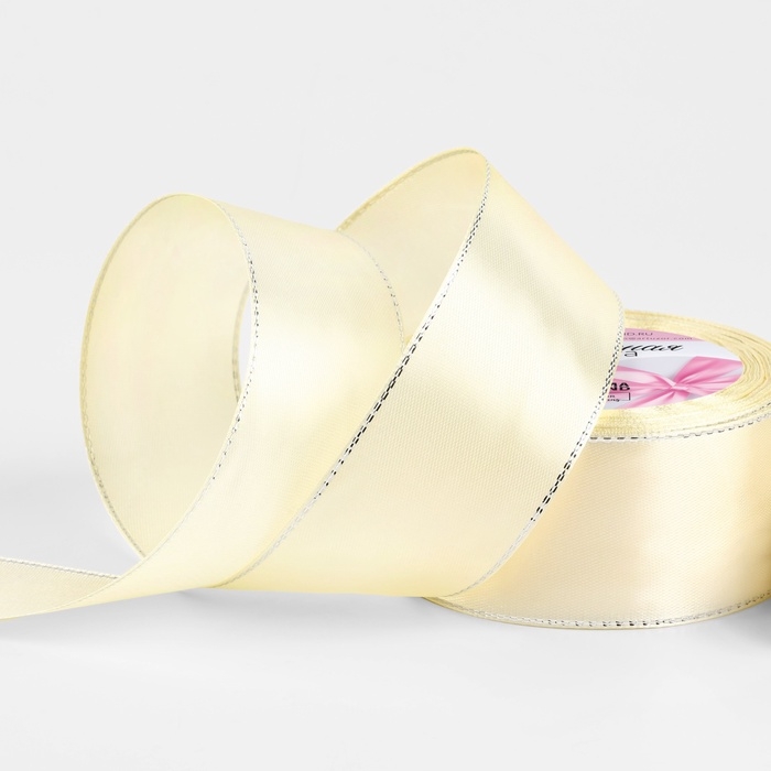 Лента атласная «Серебряные нити», 40 мм × 23 ± 1 м, цвет светло-бежевый №08