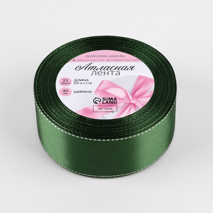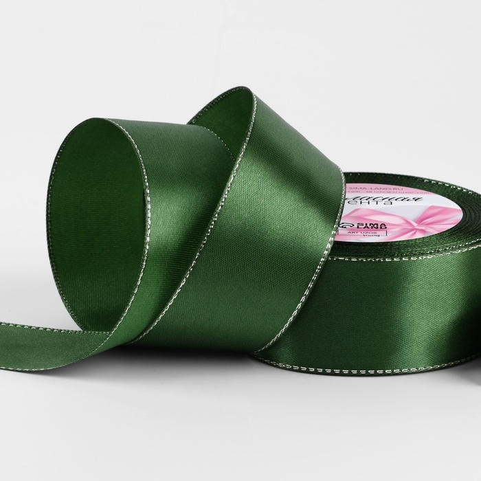 Лента атласная «Серебряные нити», 40 мм × 23 ± 1 м, цвет зелёный №49