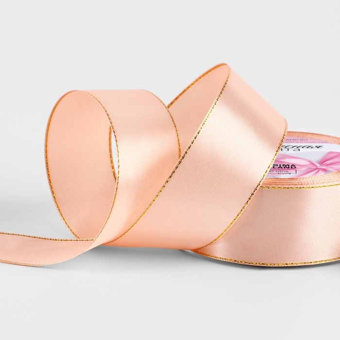 Лента атласная «Золотые нити», 40 мм × 23 ± 1 м, цвет розовое золото №107