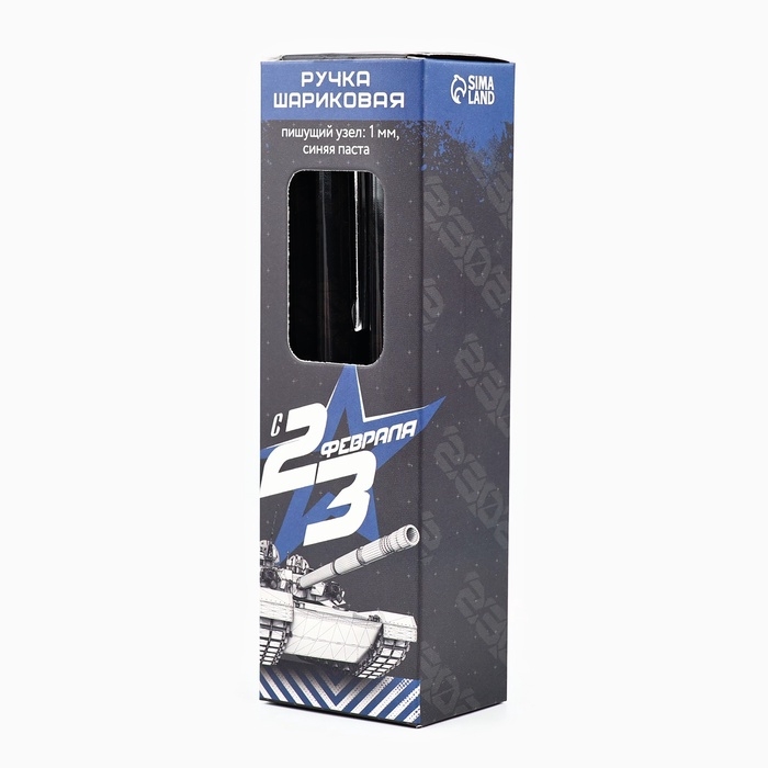 Ручка с колпачком "С 23 февраля", пластик, синяя паста, 1.0 мм